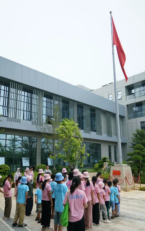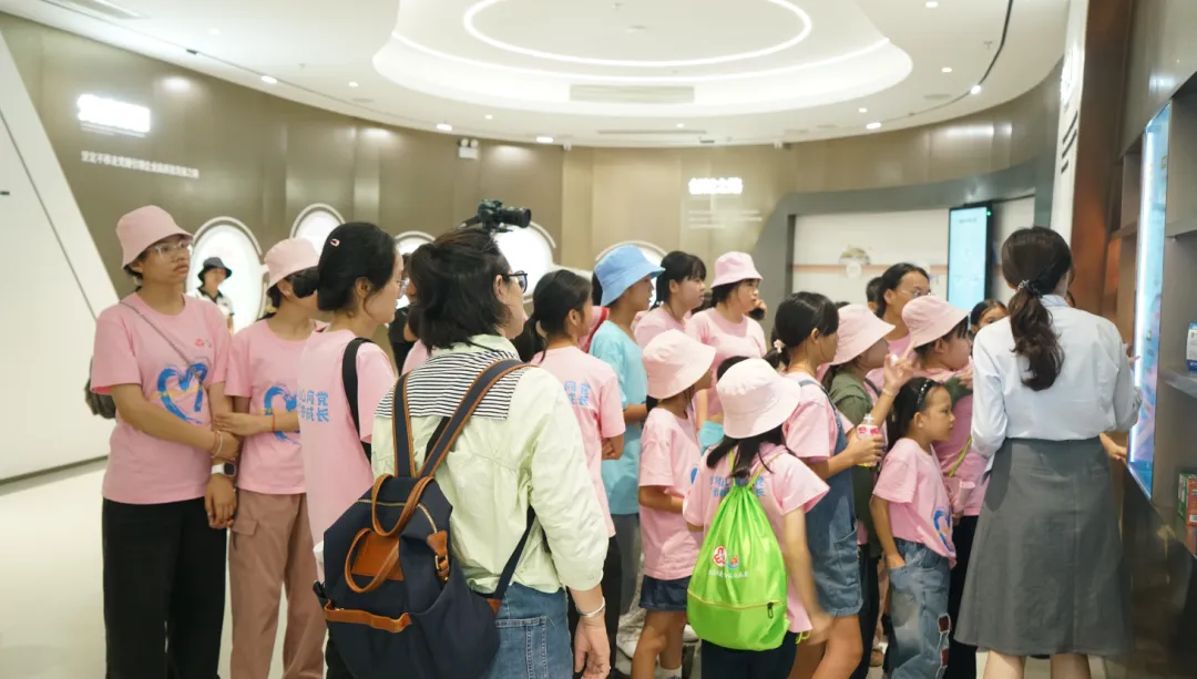 紧接着,孩子们来到了建党百年庆典红旗——070号红旗前。讲解员讲述了5001拉斯维加斯药业集团与庆典红旗的深厚渊源。孩子们听得津津有味,眼中闪烁着对党和国家的热爱与敬仰。